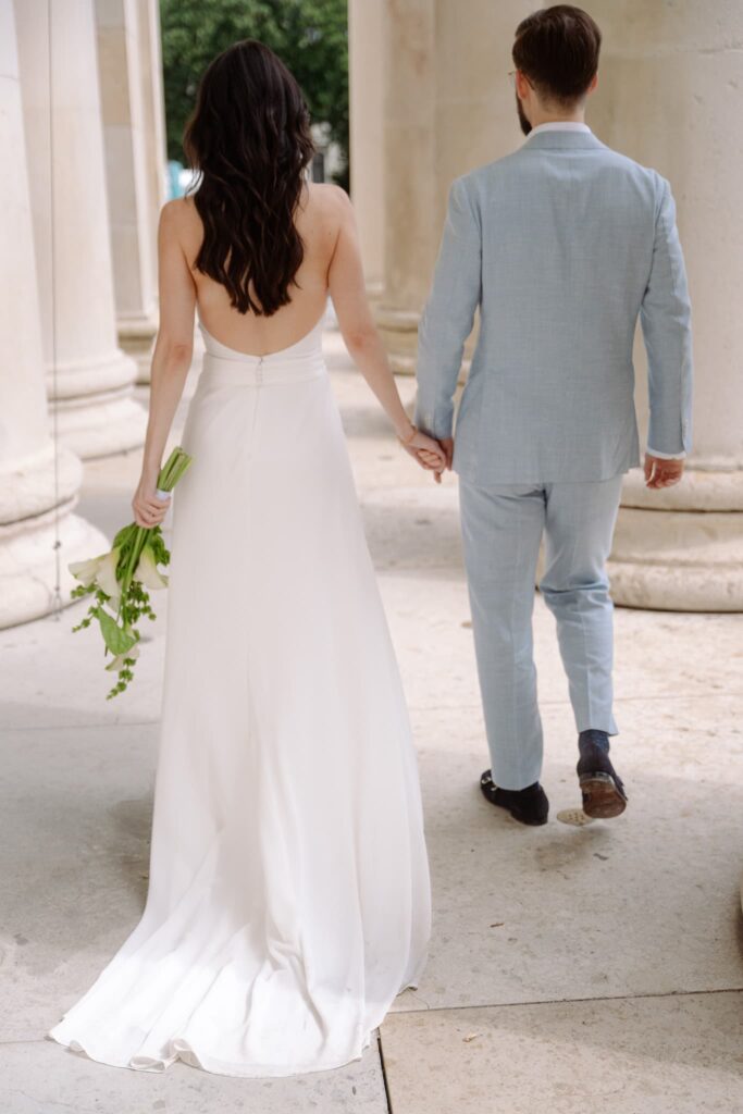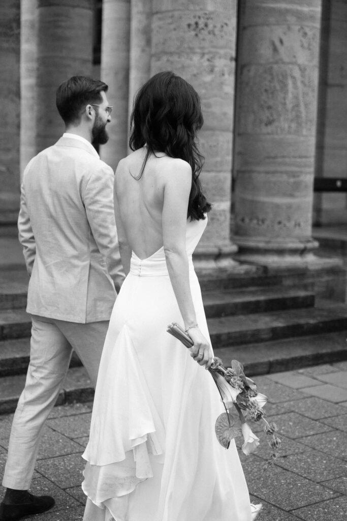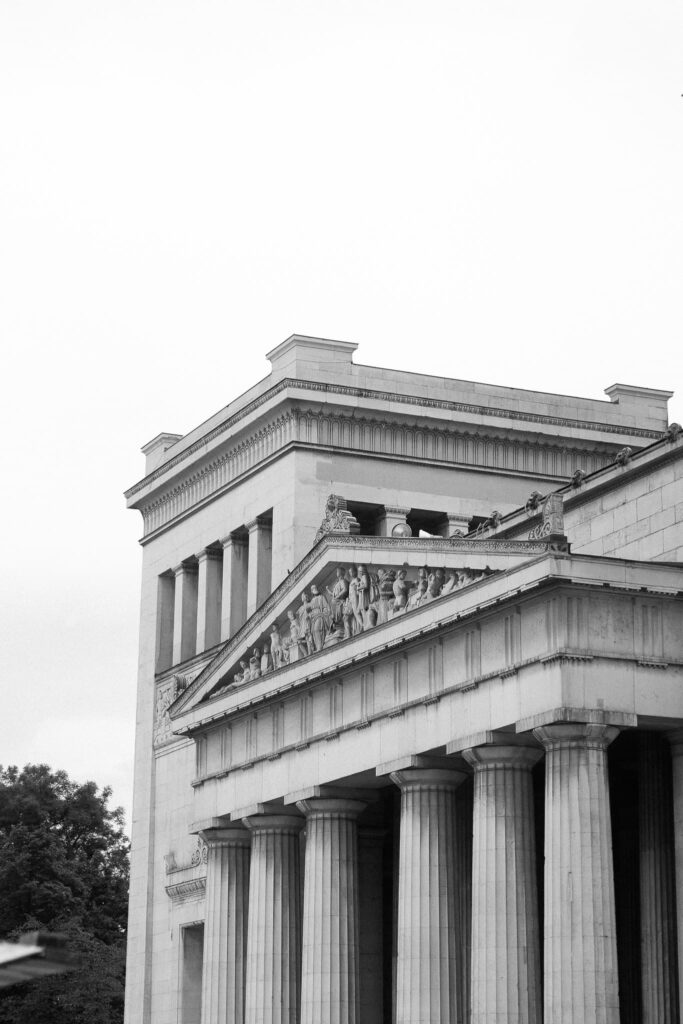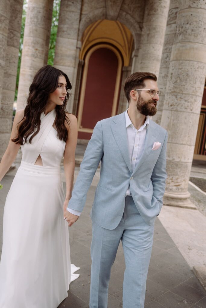 After the ceremony I recommend taking group photos directly in front of the registry office – if there is enough space. For the couple shoot afterwards, Königsplatz is ideal: architecturally impressive, clean and urban-elegant, easily reachable from Mandlstraße and perfect for calm couple portraits (see photos further below).