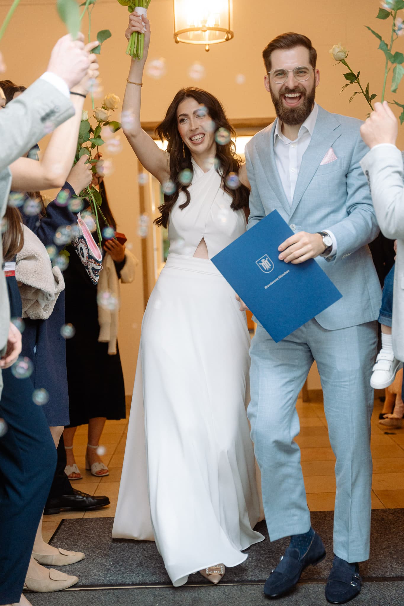 Tip: Try to secure the last slot of the day. It can certainly be busy at Mandlstraße. However, if you have the last appointment and exit after the civil ceremony, there are no further guests or other couples at the entrance. That way you can use the building for 1–2 photos in peace.