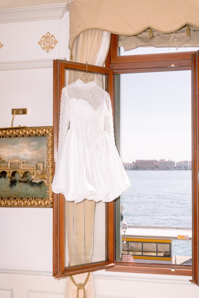 Kat and Matteo’s wedding ceremony took place in a villa on an Italian lake – a fitting backdrop for their small group celebration